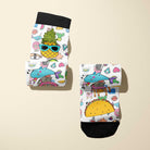 This pair is a glorious grab-bag of pop-culture chaos—think quirky icons colliding like a barn aisle conversation at peak energy. Pineapple-in-sunglasses vibes? Sushi swagger? It’s all here, and it absolutely refuses to be subtle. Perfect for riders whose brains have 27 tabs open and one of them is “why not.” Pull them on and let your socks be the party in the paddock.