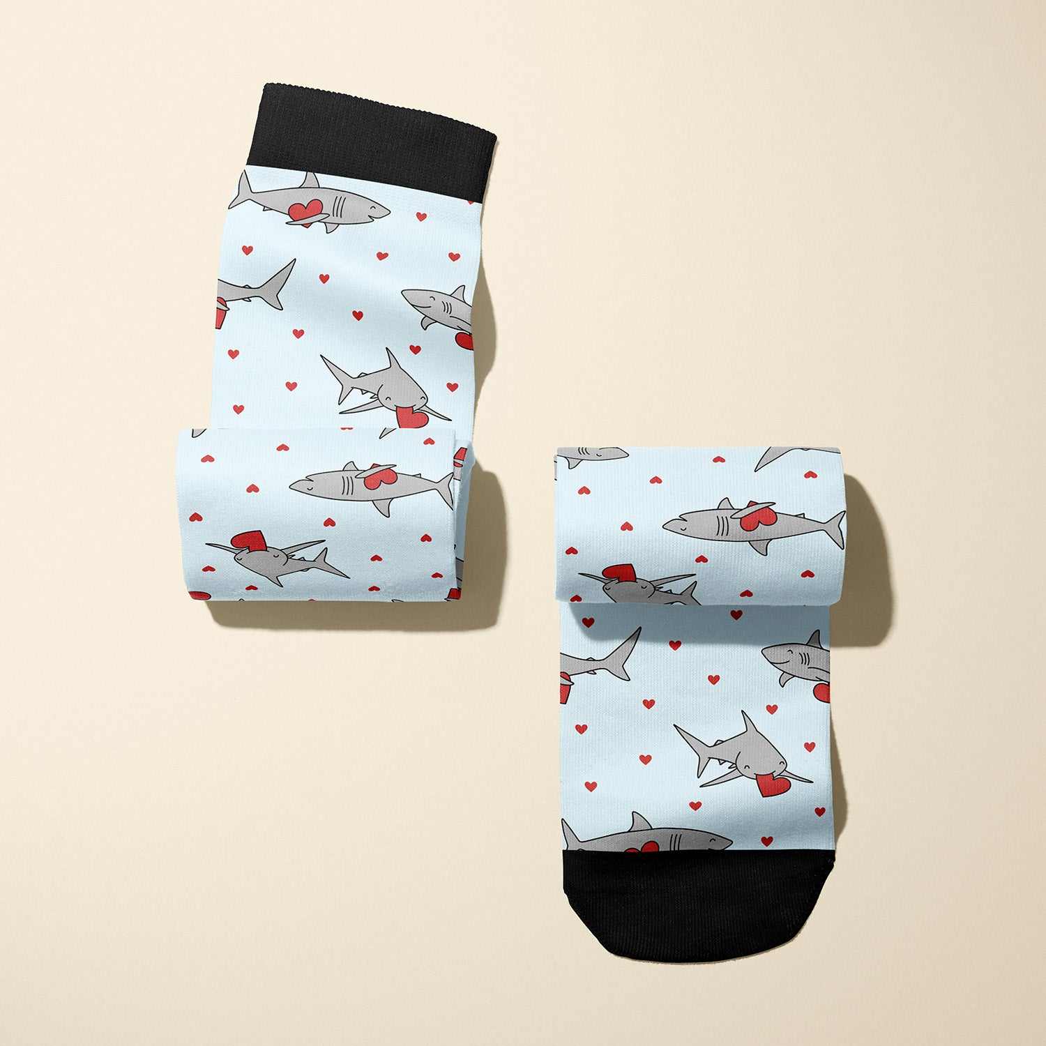 A cute shark + heart motifs = the sweetest little menace in the sea, serving affection with a side of chomp.