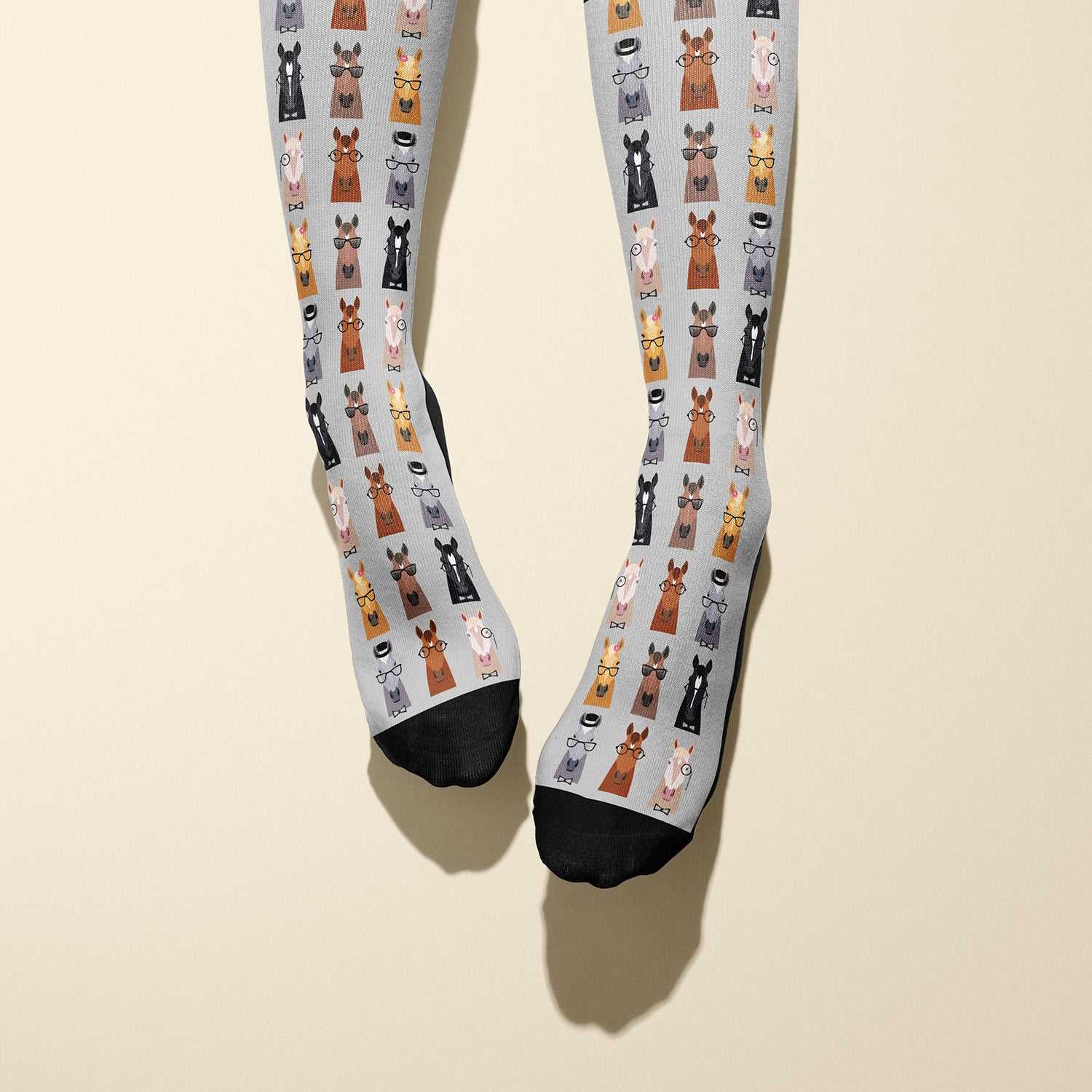 These horses are wearing glasses and looking impressively brainy, like they’re about to grade your geometry and your diagonal. It’s academic elegance with a hint of barn sass—because nothing says “I know things” like a horse in specs. Perfect for anyone who loves a smart look and a smarter joke. Wear them when you’re feeling scholarly… or just want your feet to look overqualified.