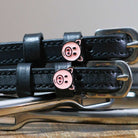 Piggy Spur Straps from ManeJane bring together luxury, durability, and personality. Handcrafted from premium black leather with a non-stretch interior, these Spur Straps hold their shape ride after ride. Each pair features a stainless steel buckle, two keepers, and a custom ManeJane charm for a signature look. At 18 inches long, they fit smoothly through your spurs and stay secure. Elevate your tack with ManeJane Spur Straps—where form meets function in every ride.