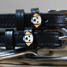Dog - Golden Retriever Spur Straps from ManeJane bring together luxury, durability, and personality. Handcrafted from premium black leather with a non-stretch interior, these Spur Straps hold their shape ride after ride. Each pair features a stainless steel buckle, two keepers, and a custom ManeJane charm for a signature look. At 18 inches long, they fit smoothly through your spurs and stay secure. Elevate your tack with ManeJane Spur Straps—where form meets function in every ride.