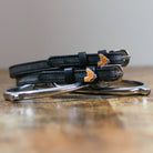 Chestnut Horse Spur Straps from ManeJane bring together luxury, durability, and personality. Handcrafted from premium black leather with a non-stretch interior, these Spur Straps hold their shape ride after ride. Each pair features a stainless steel buckle, two keepers, and a custom ManeJane charm for a signature look. At 18 inches long, they fit smoothly through your spurs and stay secure. Elevate your tack with ManeJane Spur Straps—where form meets function in every ride.