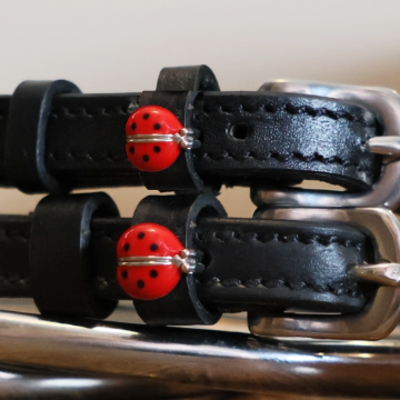 Red Lady Bug Spur Straps from ManeJane bring together luxury, durability, and personality. Handcrafted from premium black leather with a non-stretch interior, these Spur Straps hold their shape ride after ride. Each pair features a stainless steel buckle, two keepers, and a custom ManeJane charm for a signature look. At 18 inches long, they fit smoothly through your spurs and stay secure. Elevate your tack with ManeJane Spur Straps—where form meets function in every ride.