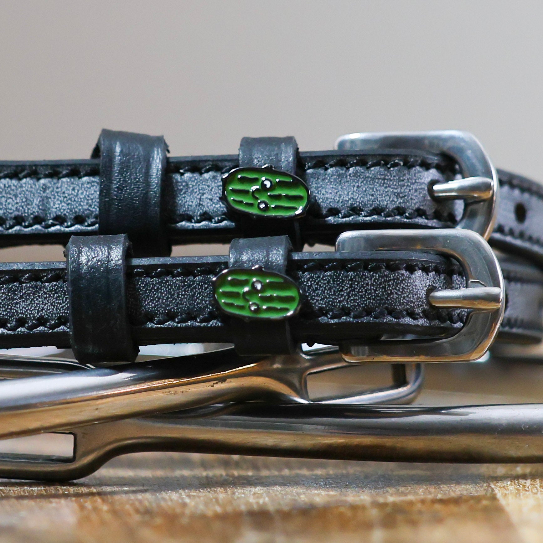 We use strong durable leather to ensure your straps don't stretch but still fit into the slots on your spurs. Accessorizing your equipment with fun charms may lead to improved happiness, smiles and good rides.