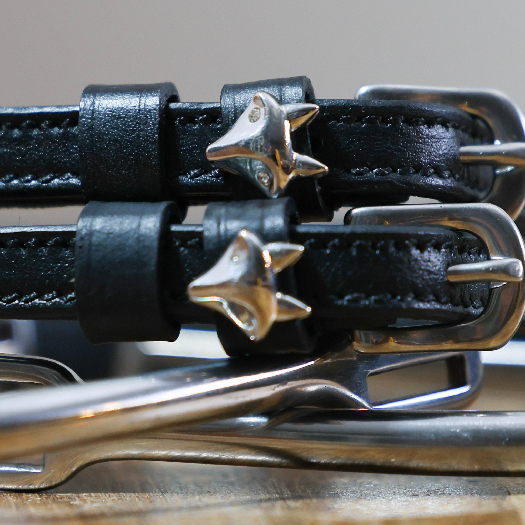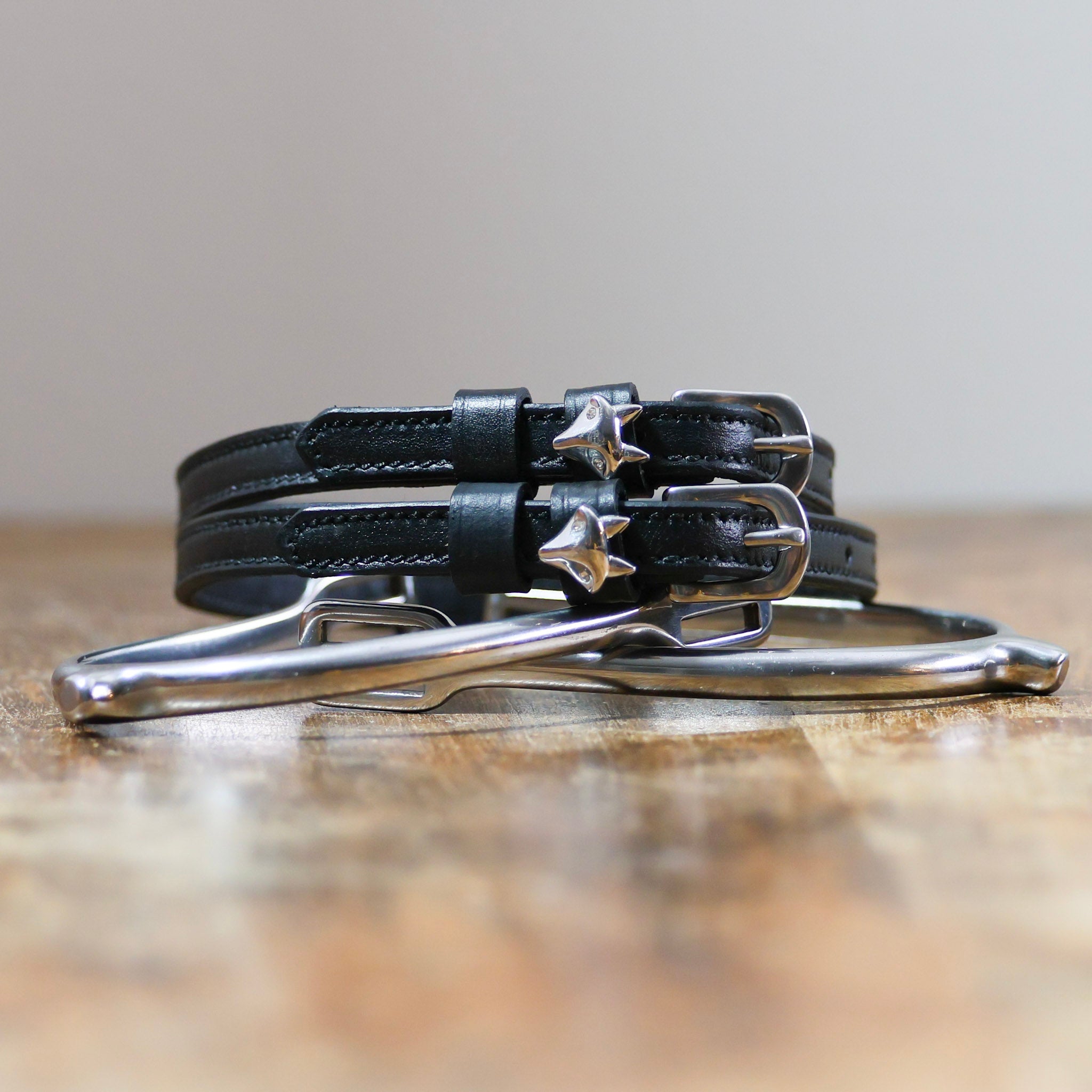 We use strong durable leather to ensure your straps don't stretch but still fit into the slots on your spurs. Accessorizing your equipment with fun charms may lead to improved happiness, smiles and good rides.
