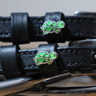 Turtle Hearts Spur Straps from ManeJane bring together luxury, durability, and personality. Handcrafted from premium black leather with a non-stretch interior, these Spur Straps hold their shape ride after ride. Each pair features a stainless steel buckle, two keepers, and a custom ManeJane charm for a signature look. At 18 inches long, they fit smoothly through your spurs and stay secure. Elevate your tack with ManeJane Spur Straps—where form meets function in every ride.