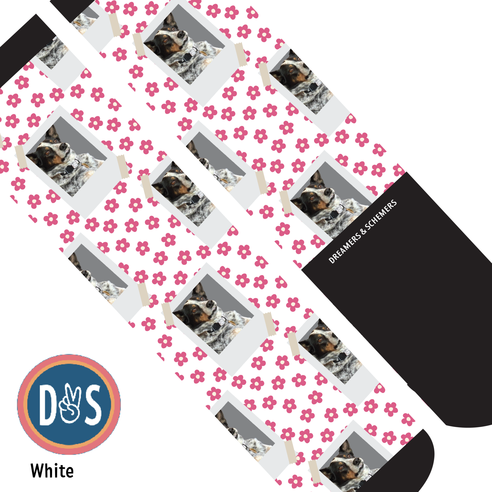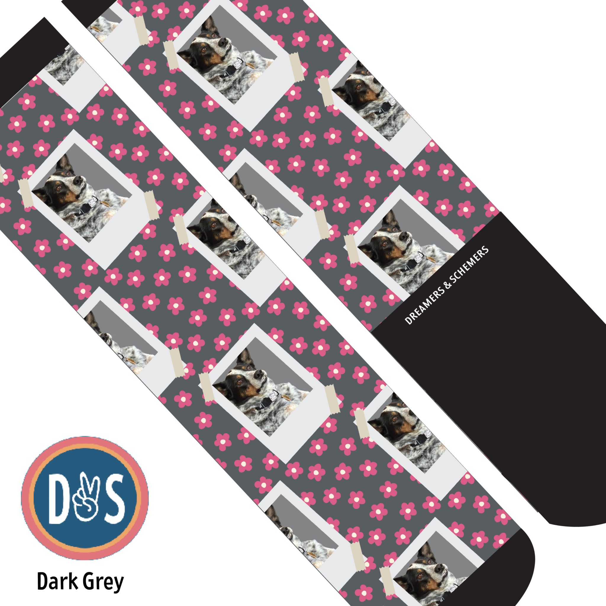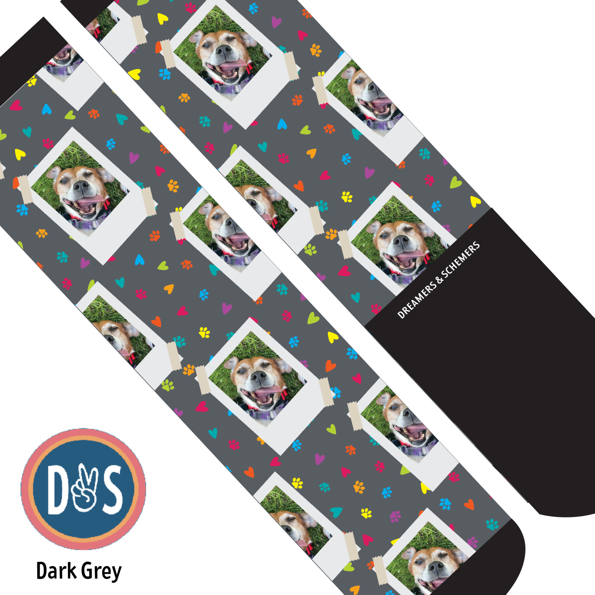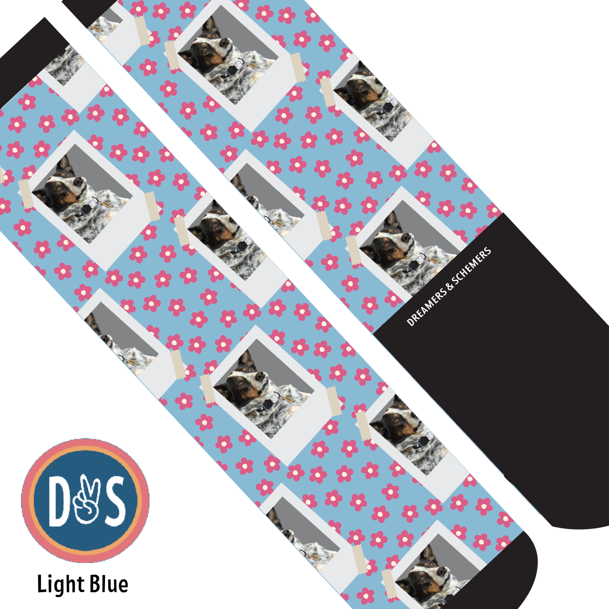 Add your favorite photo to your favorite D&S Socks! Making custom socks at Dreamers & Schemers is as easy as 1,2,3!