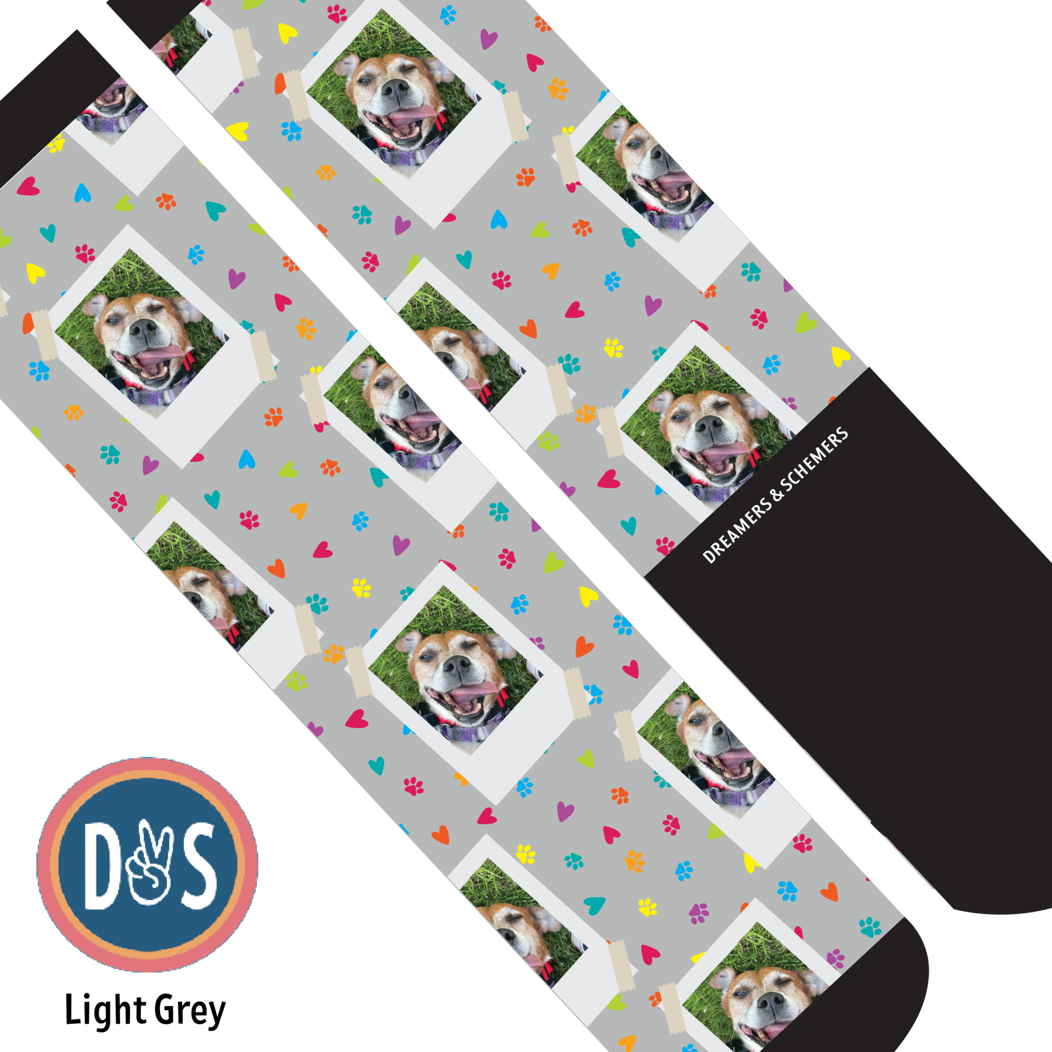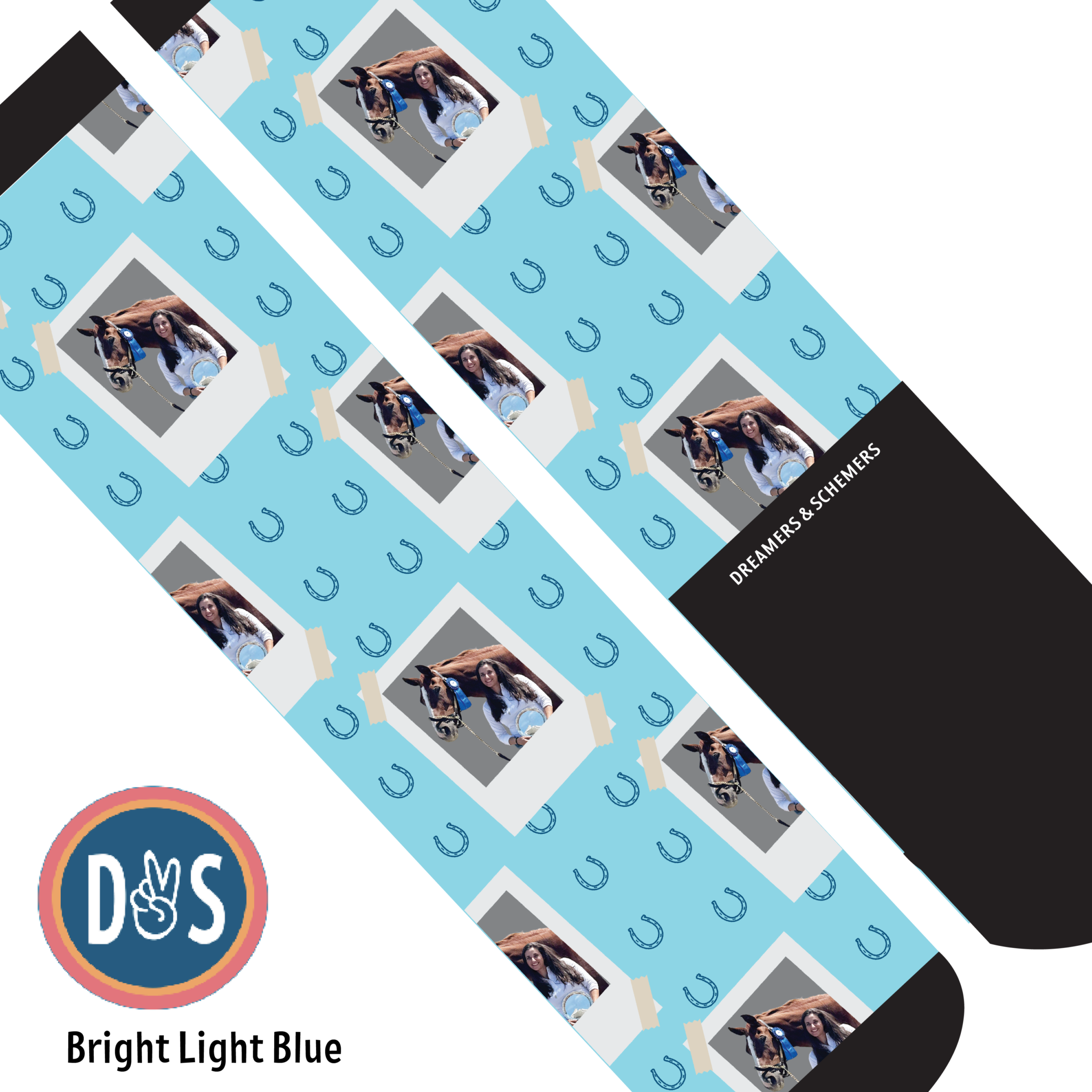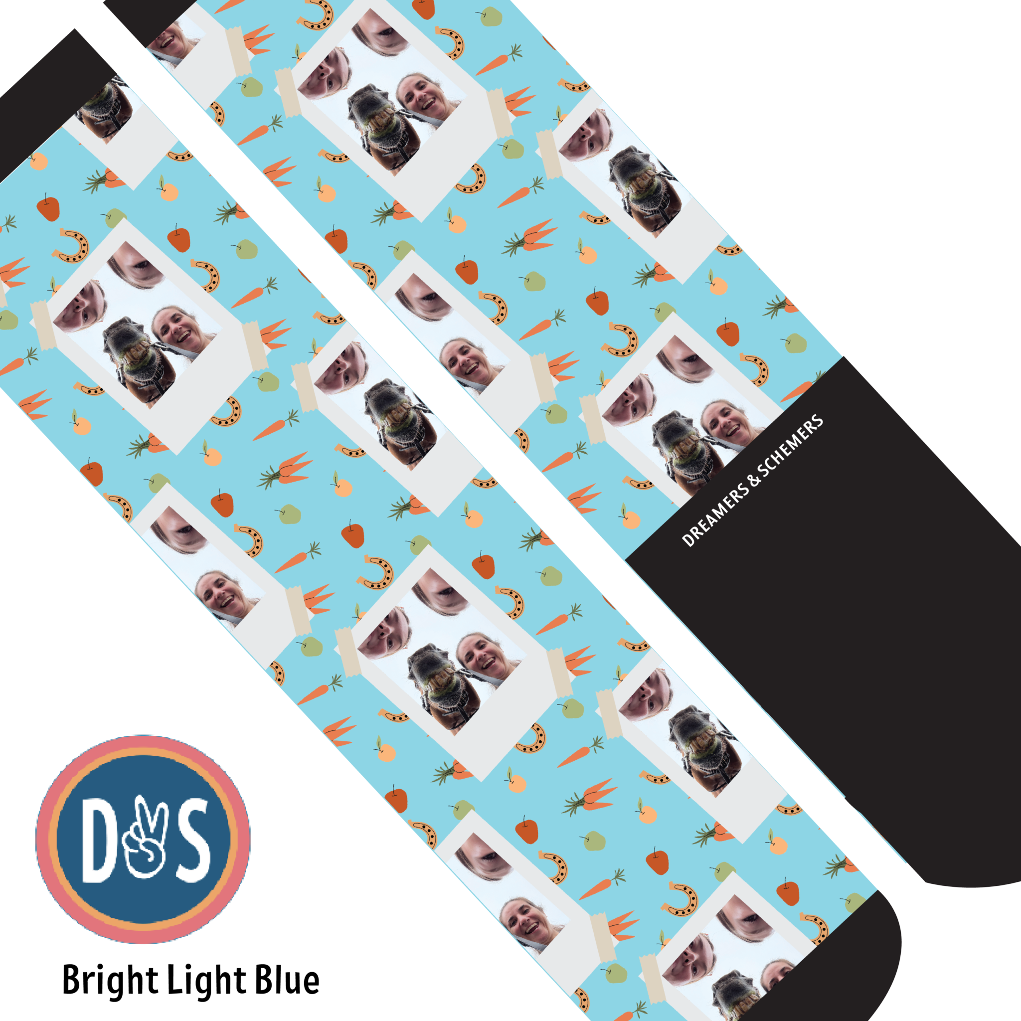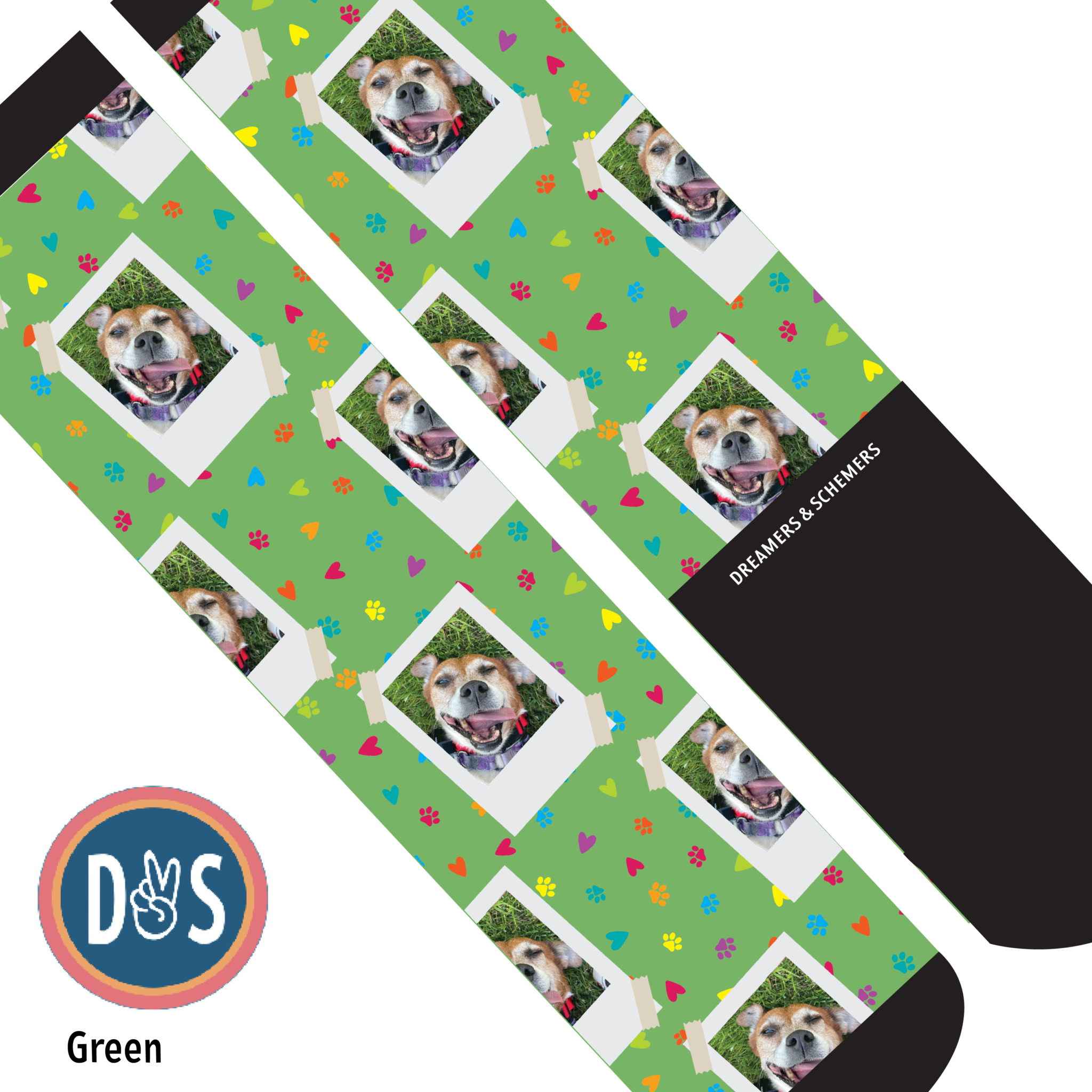 Add your favorite photo to your favorite D&S Socks! Making custom socks at Dreamers & Schemers is as easy as 1,2,3!