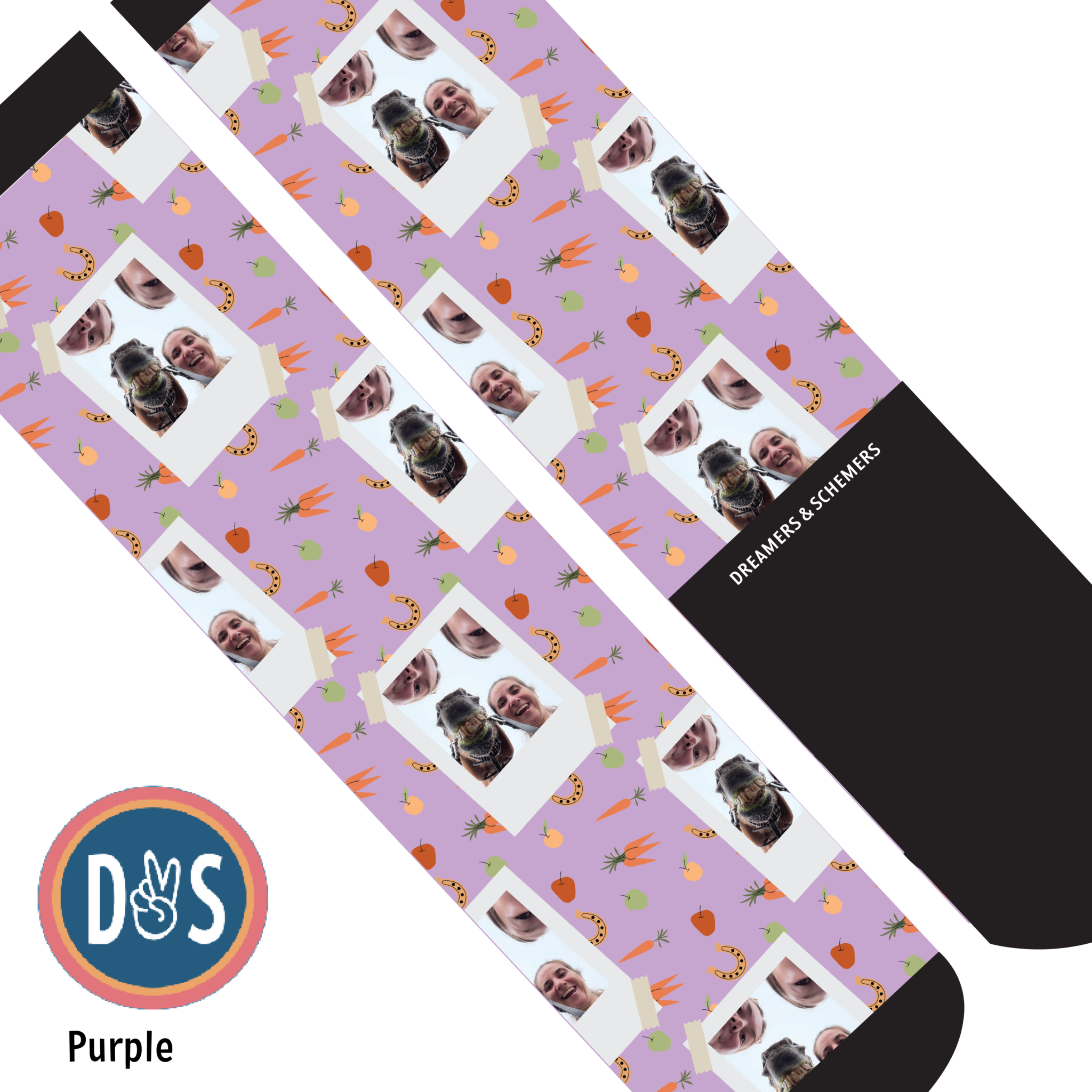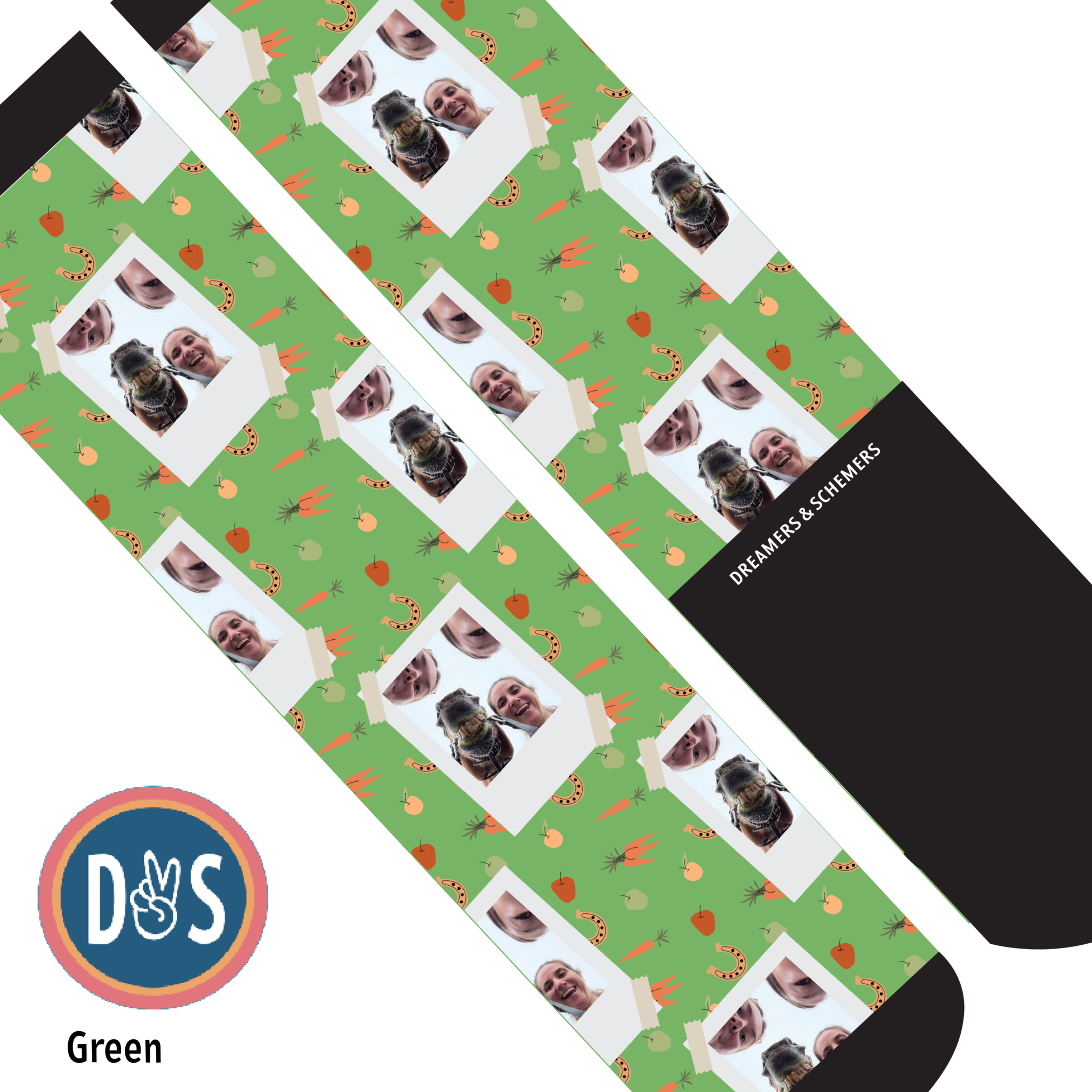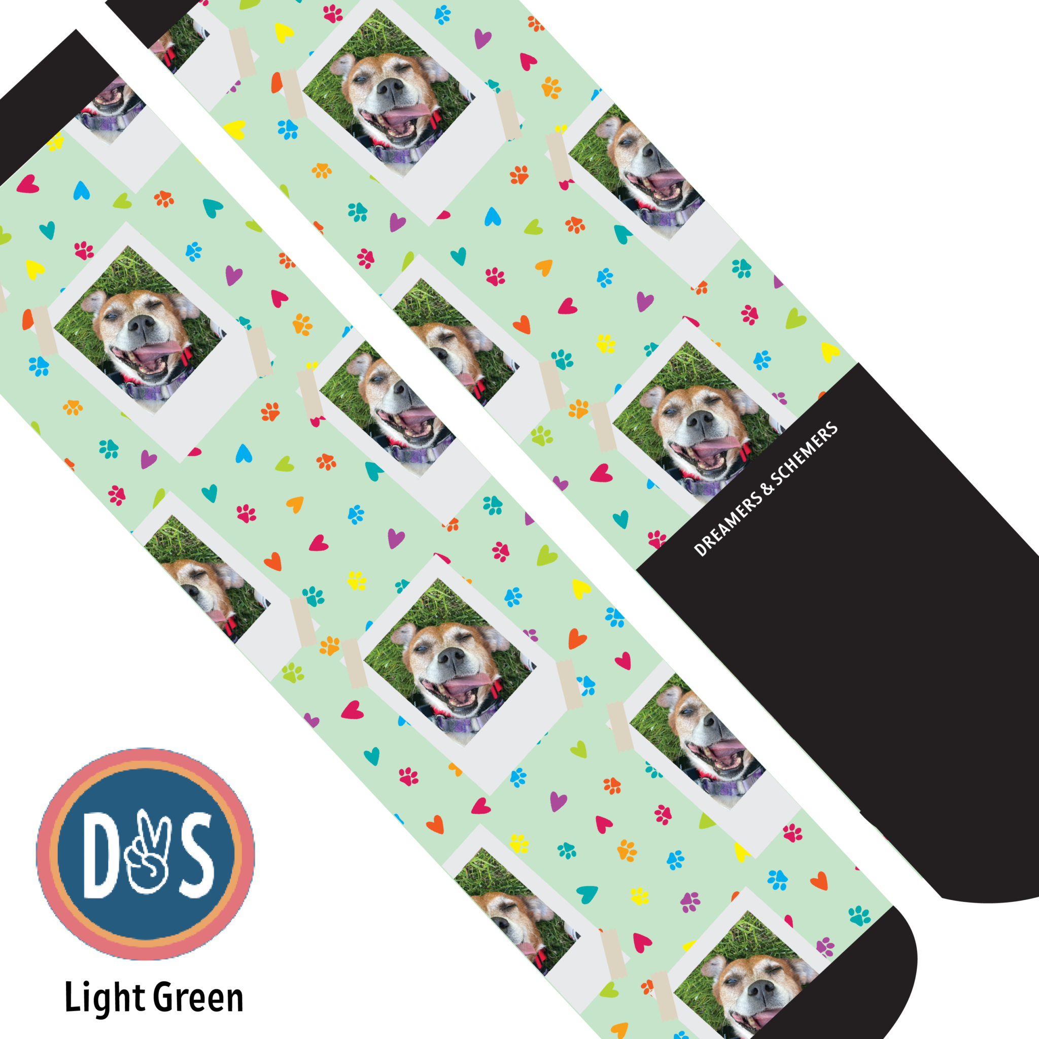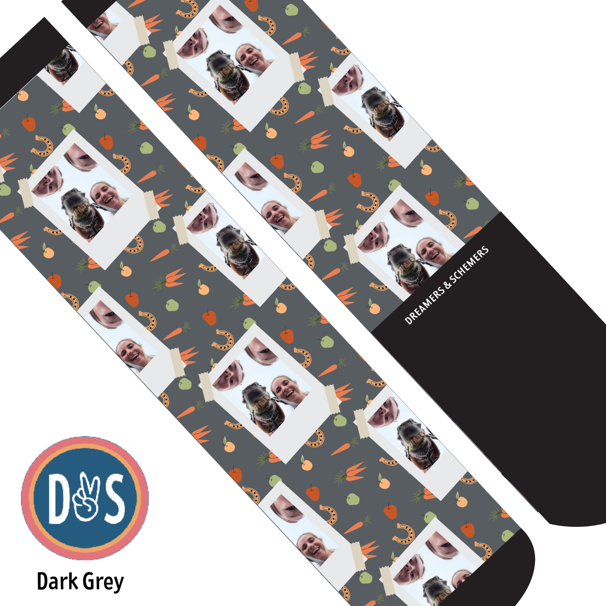 Add your favorite photo to your favorite D&S Socks! Making custom socks at Dreamers & Schemers is as easy as 1,2,3!