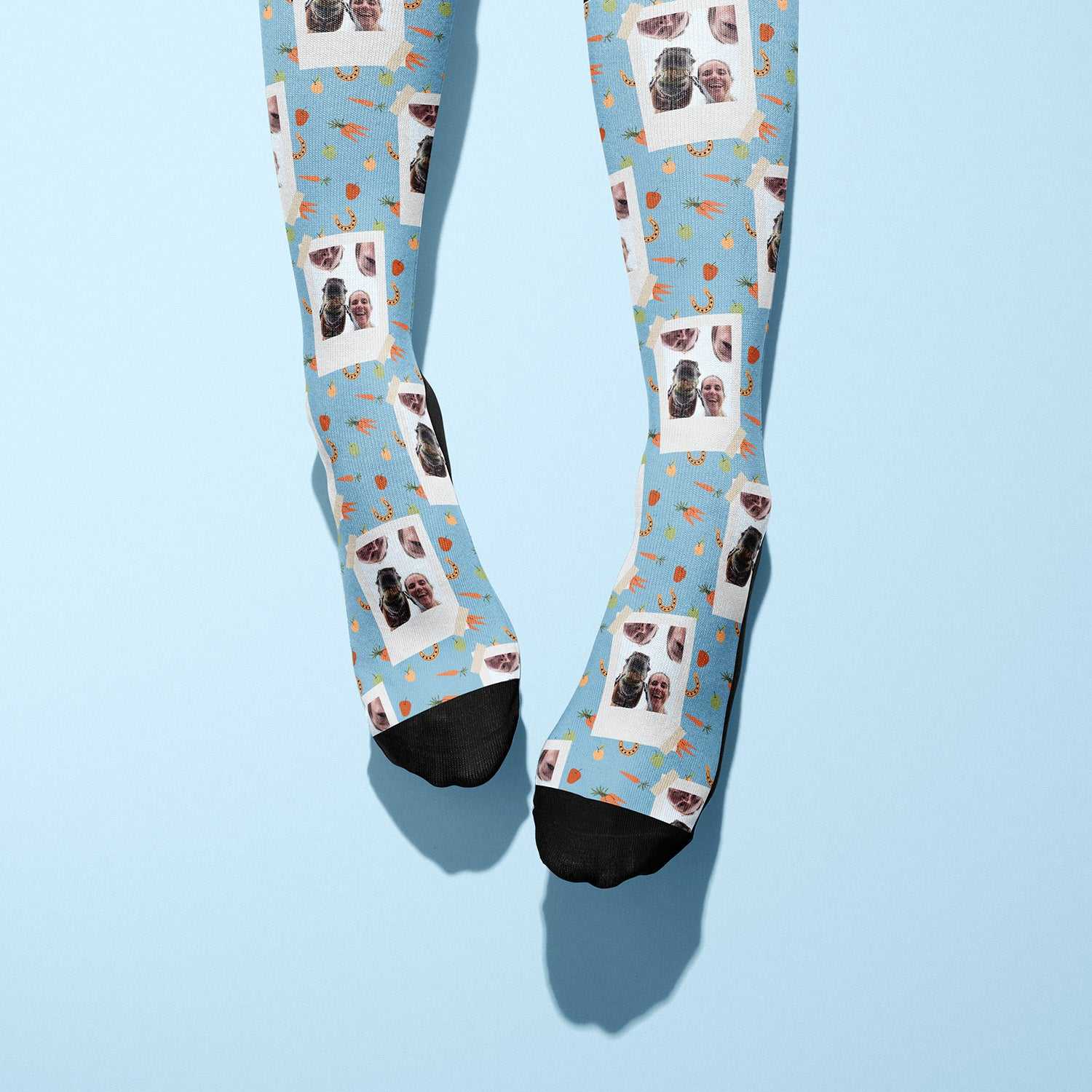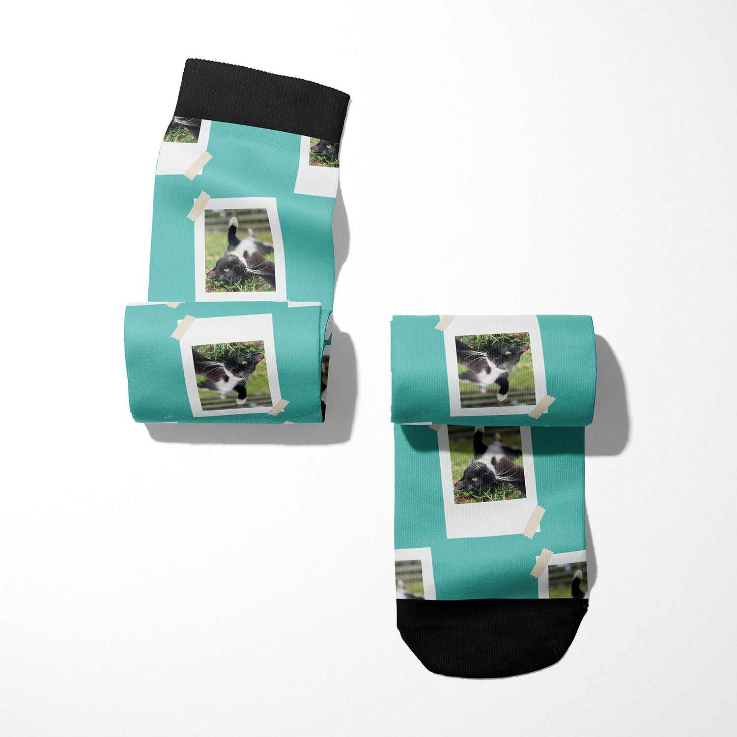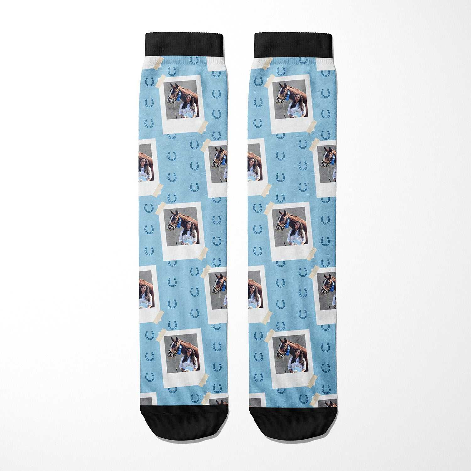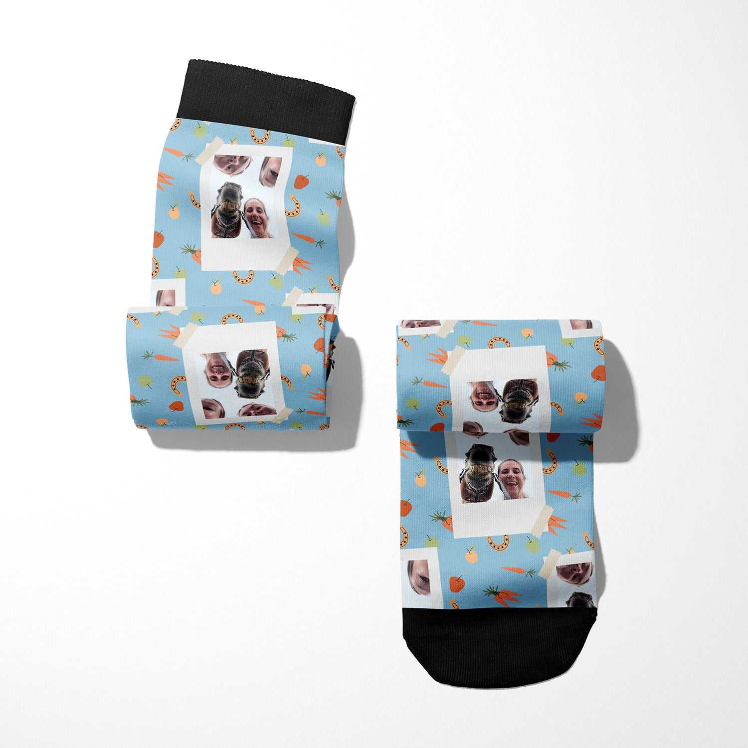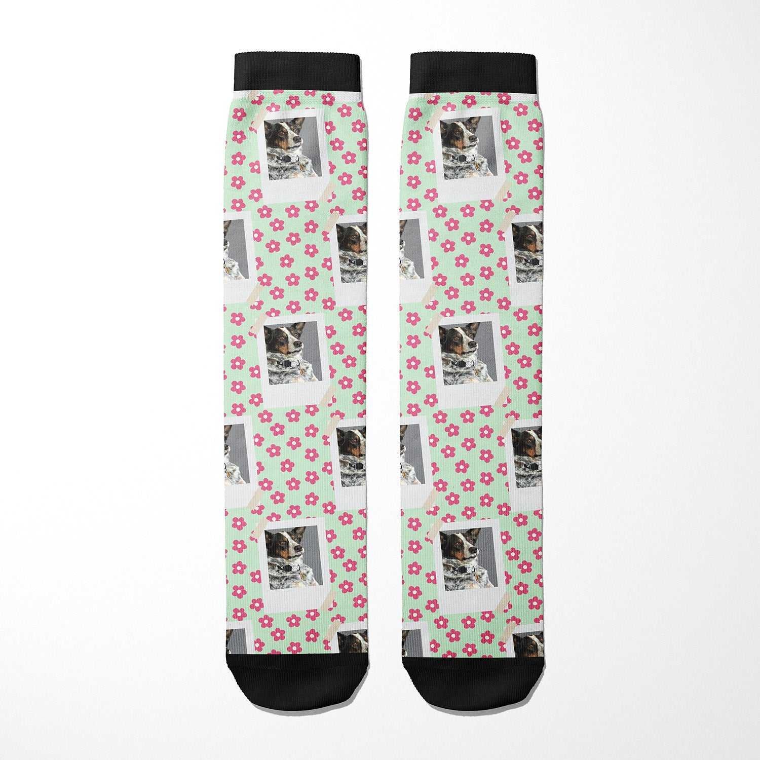 Pick your favorite design from our Custom Socks Collection (below) and upload your favorite photo before adding it to your cart.