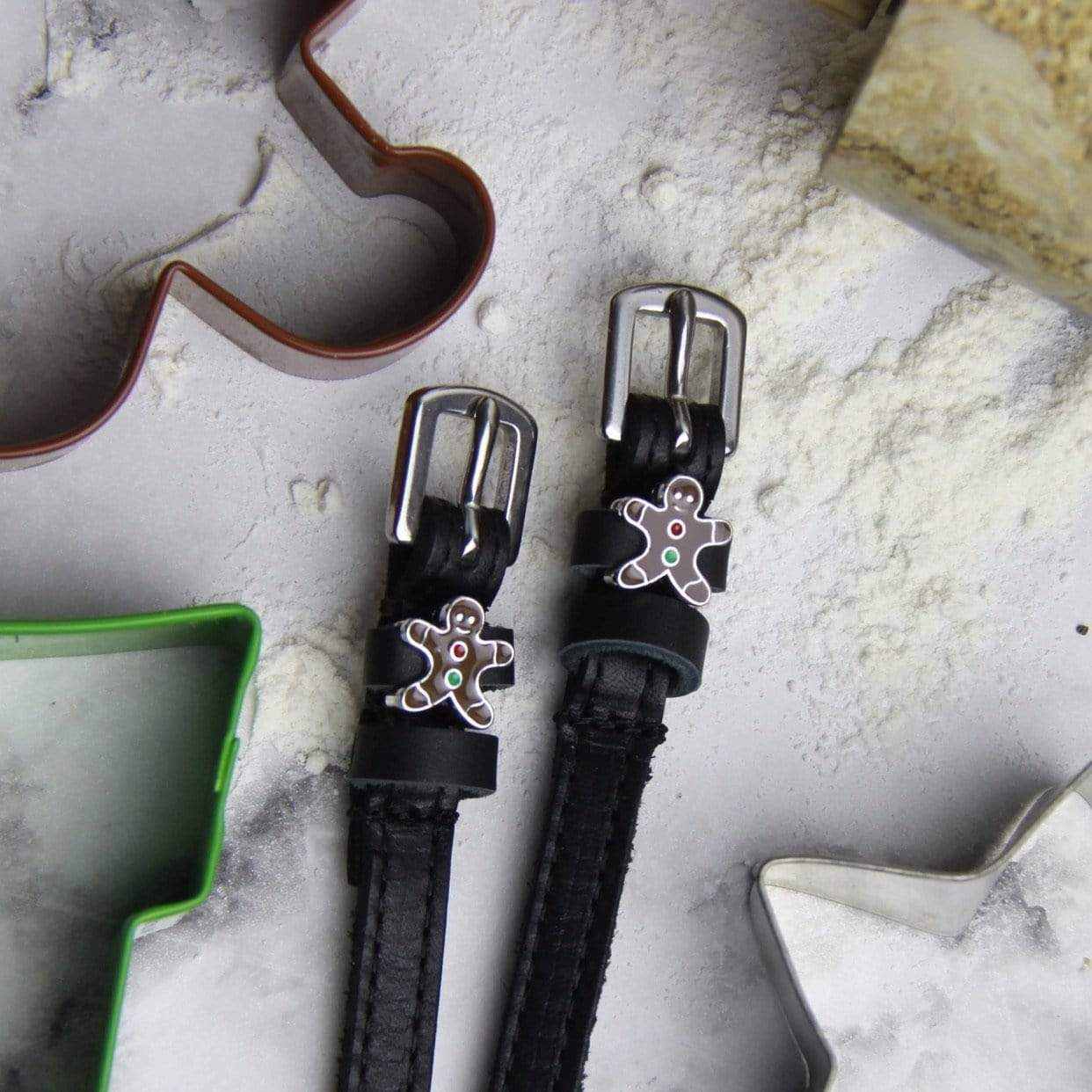 Ginger Bread Spur Straps from ManeJane bring together luxury, durability, and personality. Handcrafted from premium black leather with a non-stretch interior, these Spur Straps hold their shape ride after ride. Each pair features a stainless steel buckle, two keepers, and a custom ManeJane charm for a signature look. At 18 inches long, they fit smoothly through your spurs and stay secure. Elevate your tack with ManeJane Spur Straps—where form meets function in every ride.